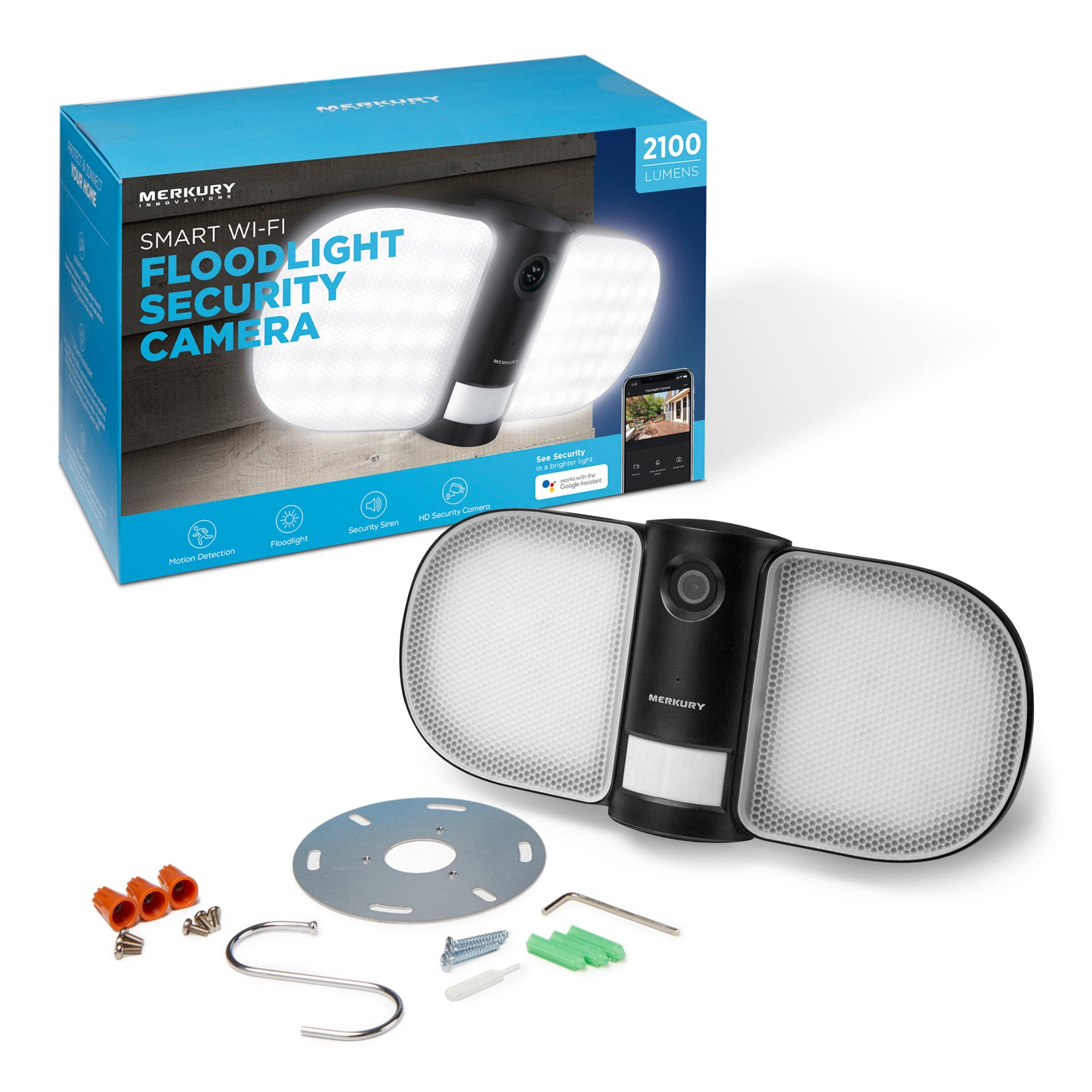 Merkury Innovations Smart Floodlight 1080p Camera, Requires 2.4 GHZ Wi-Fi