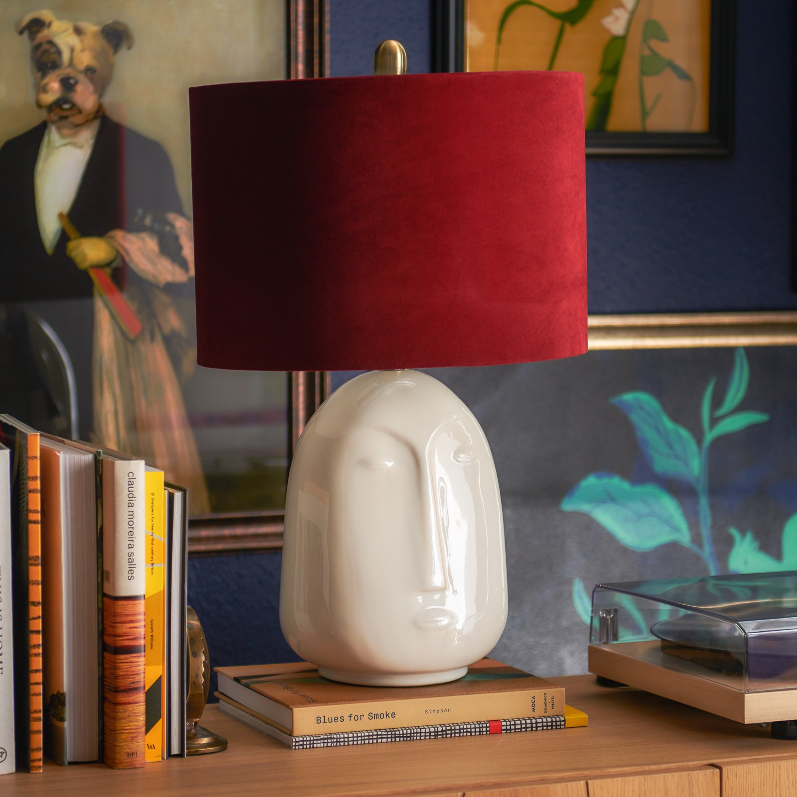 Ivory Ceramic Face Lamp with Wine Velvet Shade by Drew Barrymore Flower Home