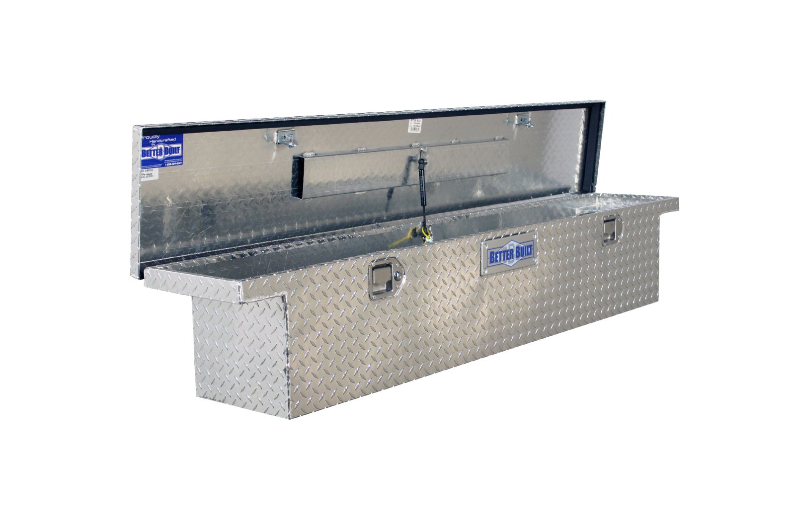 - Technical Information: This ultra-durable, all-aluminum truck tool box measures 70″ long, 12.5″ wide, and 13″ tall. This slim design keeps the majority of the truck bed free for use and the low profile design allows for greater visibility through the rear window of the truck.