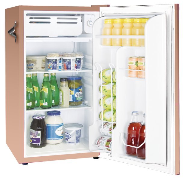 - 2.95 cu. ft. fresh food compartment and .25 cu. ft. freezer compartment allows for additional storage of fresh food and frozen goods