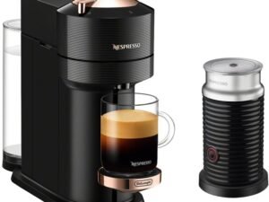 Nespresso by De’Longhi introduces the Vertuo Next Premium, the latest Vertuo Nespresso coffee maker, which features an all-new design for the ultimate brewing experience. In addition to its original espressos, this machine produces an extraordinary cup of coffee with a smooth layer of crema – the signature of a truly great cup of coffee. Just insert a Vertuo capsule and close the lever. When activated, the capsule spins up to 7,000 rotations per minute, blending ground coffee with water and producing the perfect crema to enjoy quality coffee in larger cup sizes. The machine delivers the optimal in-cup results for each blend using capsule-specific brewing with barcode reading. Use the included Aeroccino milk frothier to make delicious cappuccinos and lattes with perfectly steamed milk. Plus, a convenient tasting kit with 12 Nespresso Vertuo capsules is included to get you started.