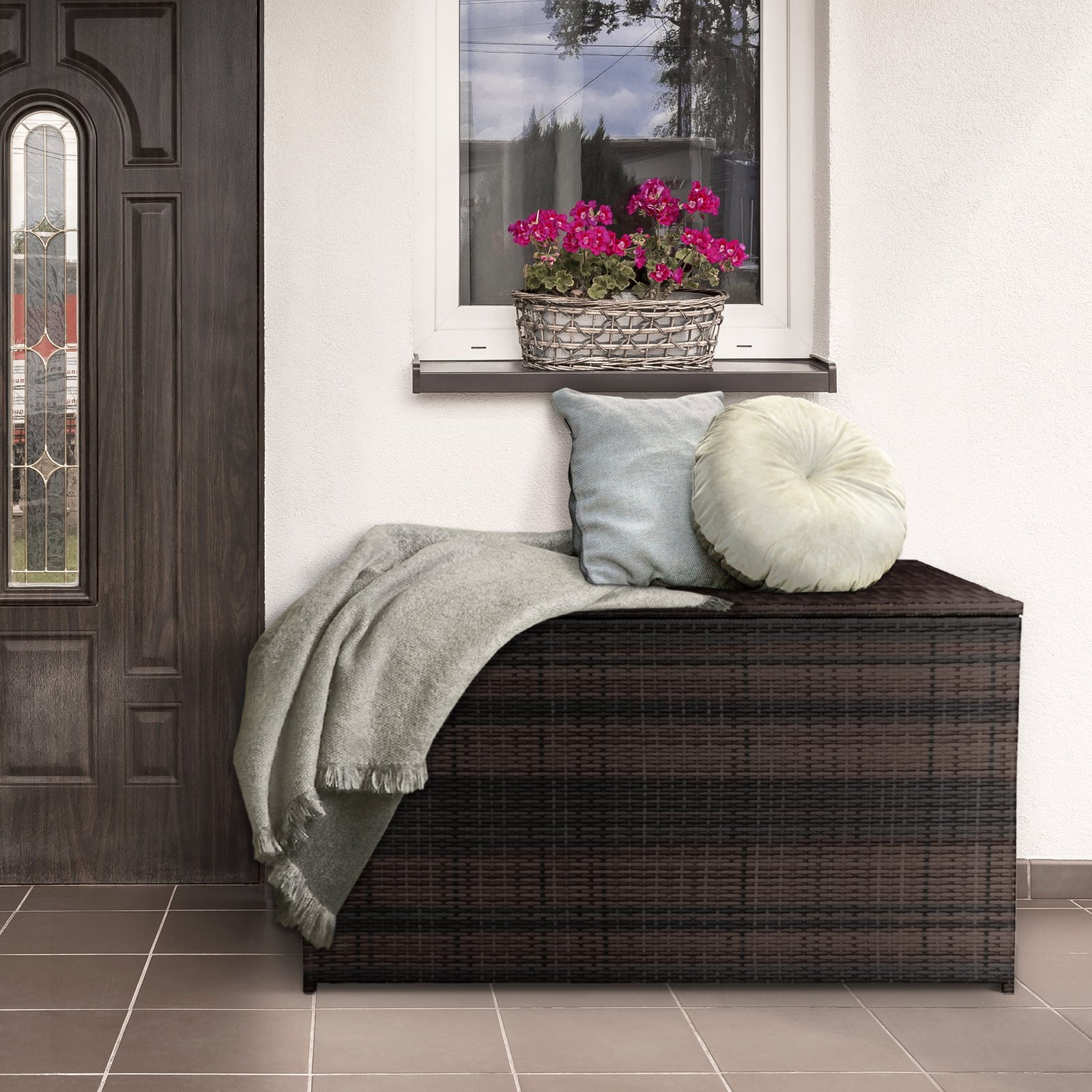 - OUTDOOR STORAGE IN STYLE: Keep your pool accessories, outdoor cushions, or other miscellany safe and out of sight in chic modern style with this patio storage chest from Teamson Home.
