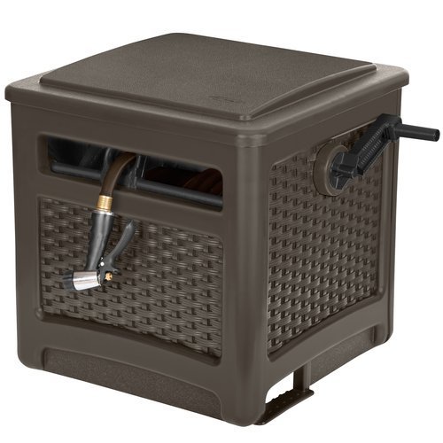 Suncast 225 ft. Smart Trak Wicker Garden Hose Reel Guide and Hideaway, Java Brown