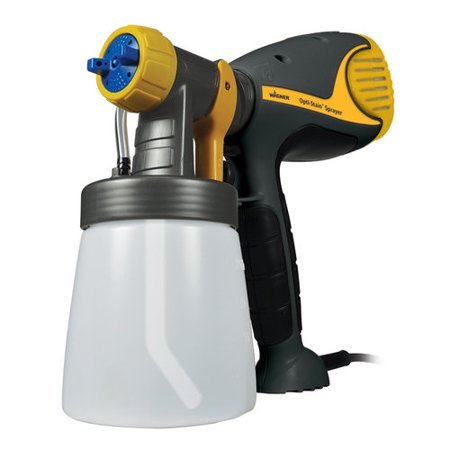 Add the finishing touches to a DIY project with the Wagner Opti-Stain Sprayer. It features a lightweight, handheld design that is easy to hold and control. With HVLP air technology, this Wagner paint sprayer sprays thin materials with ease. It offers lower overspray compared to traditional models. Use this handheld paint sprayer to add light-bodied stain, sealers and enamel materials to decks, fences and more. The dual-fan air turbine is powerful enough for outdoor use. A detail finish nozzle is included to allow horizontal, vertical and round patterns. The suction tube can be adjusted for spraying in any direction.