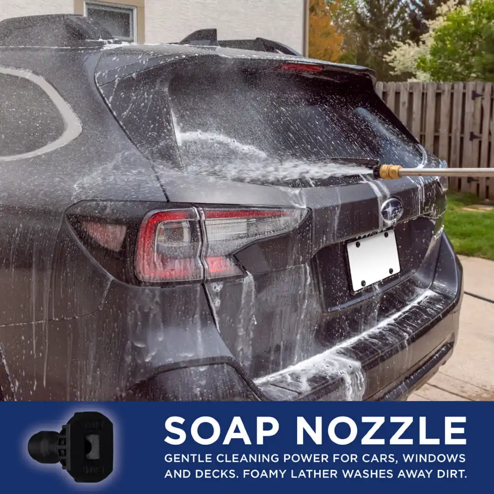 - 5 Quick Connect nozzles: 0°, 15°, 25°, 40°, and soap applicator tip for adjustable spray