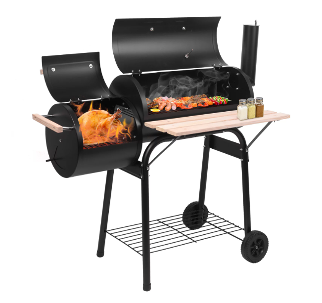 Zimtown BBQ Charcoal Grill Outdoor Barbecue Pit with Offset Smoker Patio Backyard Black