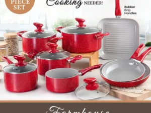 Granitestone Diamond Farmhouse 13 Piece Pots and Pans Set, Nonstick Cookware Set