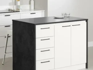 South Shore Myro, Contemporary Kitchen Island, Faux Black Stone and White