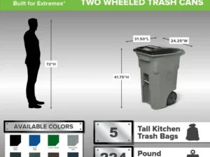 Toter 64 Gal. Trash Can Blackstone with Quiet Wheels and Lid