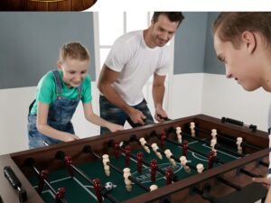Barrington 54 Inch Furniture Style Foosball Soccer Table, Two Tone Wood Grain, Includes 2 Balls, Multi Person Table Foosball Soccer Adults, Families, Black/Brown