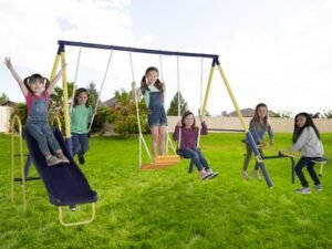 Sportspower Palmview Swing Set with Teeter-Totter, Standing Swing, and 5ft Heavy Duty Slide